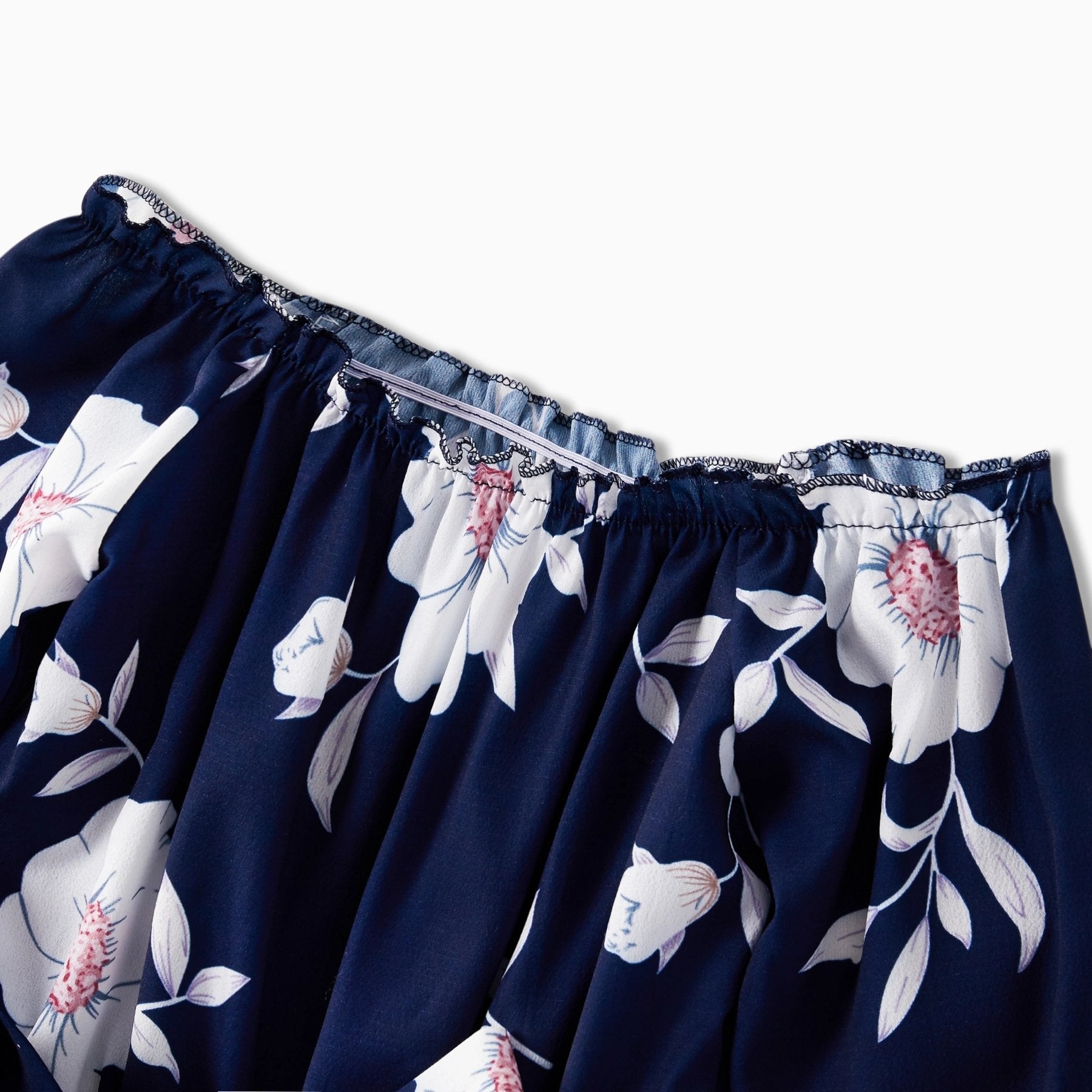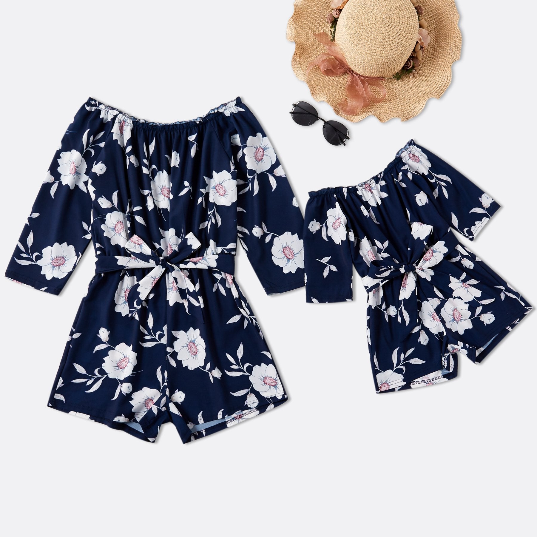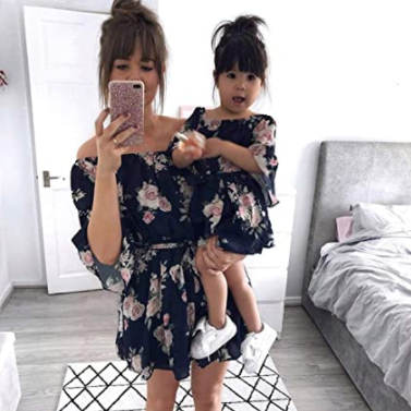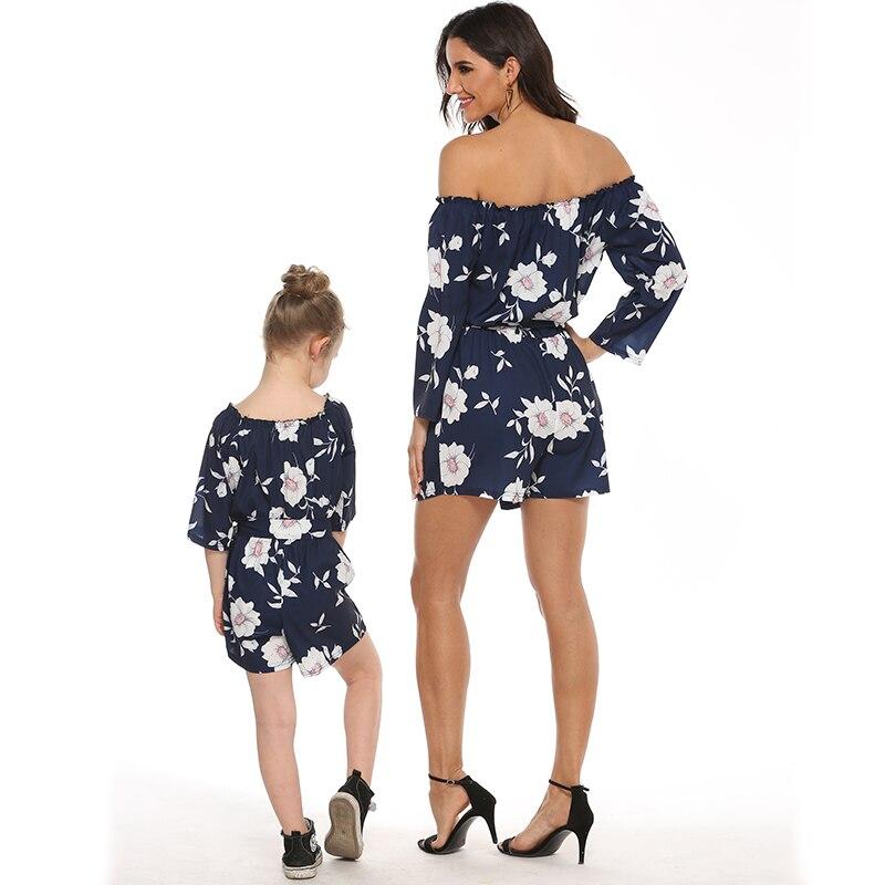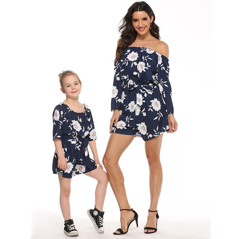 ΥΠΕΡΟΧΕΣ ΑΣΟΡΤΙ ΚΟΝΤΕΣ ΦΟΡΜΕΣ σε χρώμα μπλε με λουλούδια και με έξω τους ώμους για μαμά και κόρη!