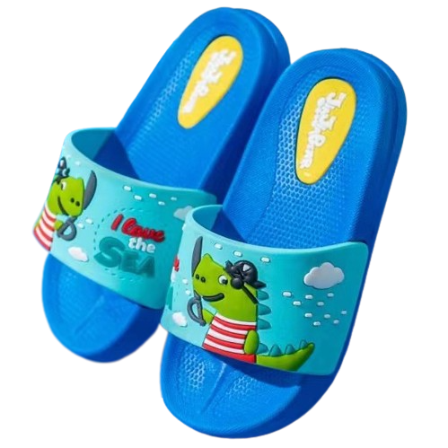 Παιδικές παντόφλες με κροκόδειλους - πειρατές για αγόρια σε όμορφους χρωματισμούς, τέλεια για τη θάλασσα και ασορτί με τα παιδικά μαγιό μας.