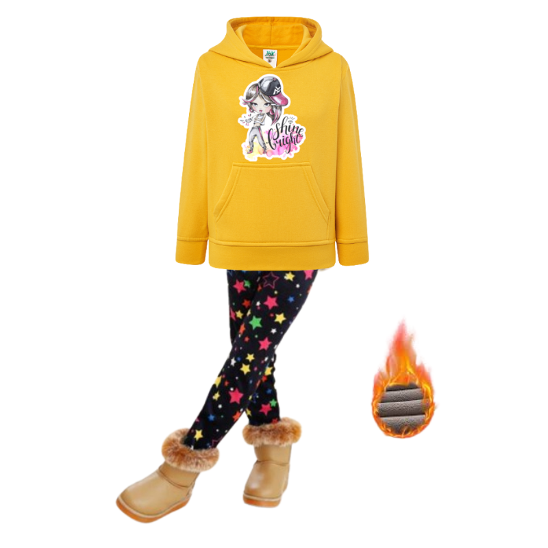 Πολύ χαρτιωμένο ΖΕΣΤΟ κολάν με εσωτερική επένδυση μαζί με άνετο και κομψό φούτερ με κουκούλα για τα κορίτσια μας!