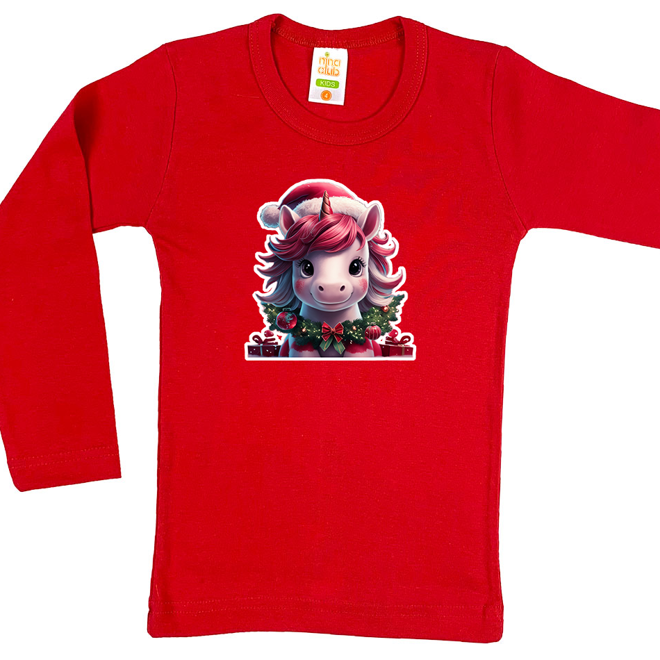 Πολύ χαριτωμένη μακρυμάνικη μπλουζίτσα με Χριστουγεννιάτικο σχέδιο μονόκερο!